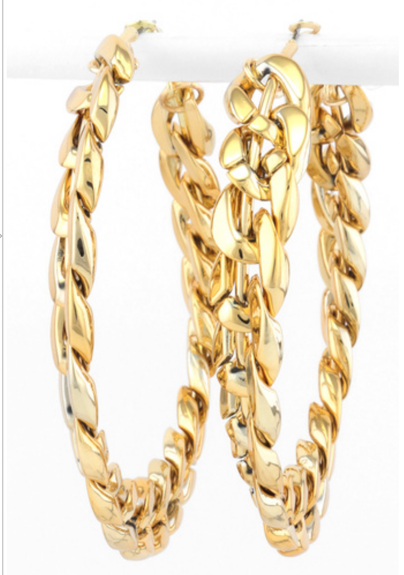 Acrylic chain link hoop earrings. Diameter: 3.5". Lever back.