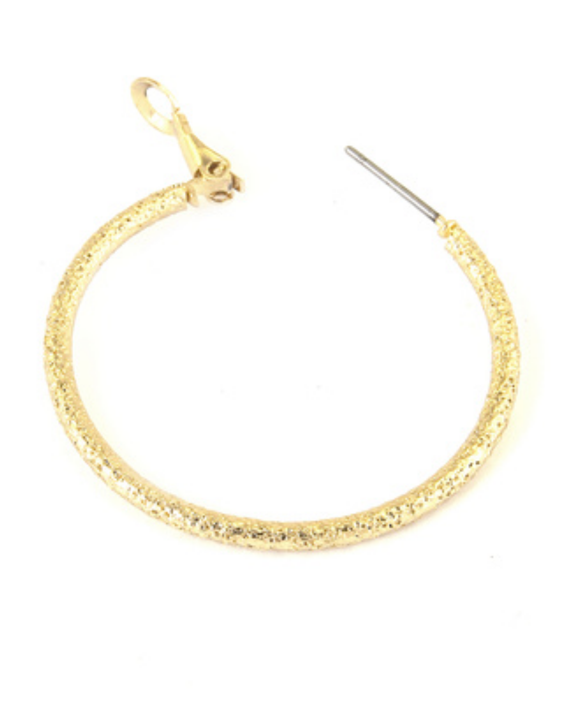Metal hammered hoop earrings. Earring diameter: 1 3/4". Lever back.