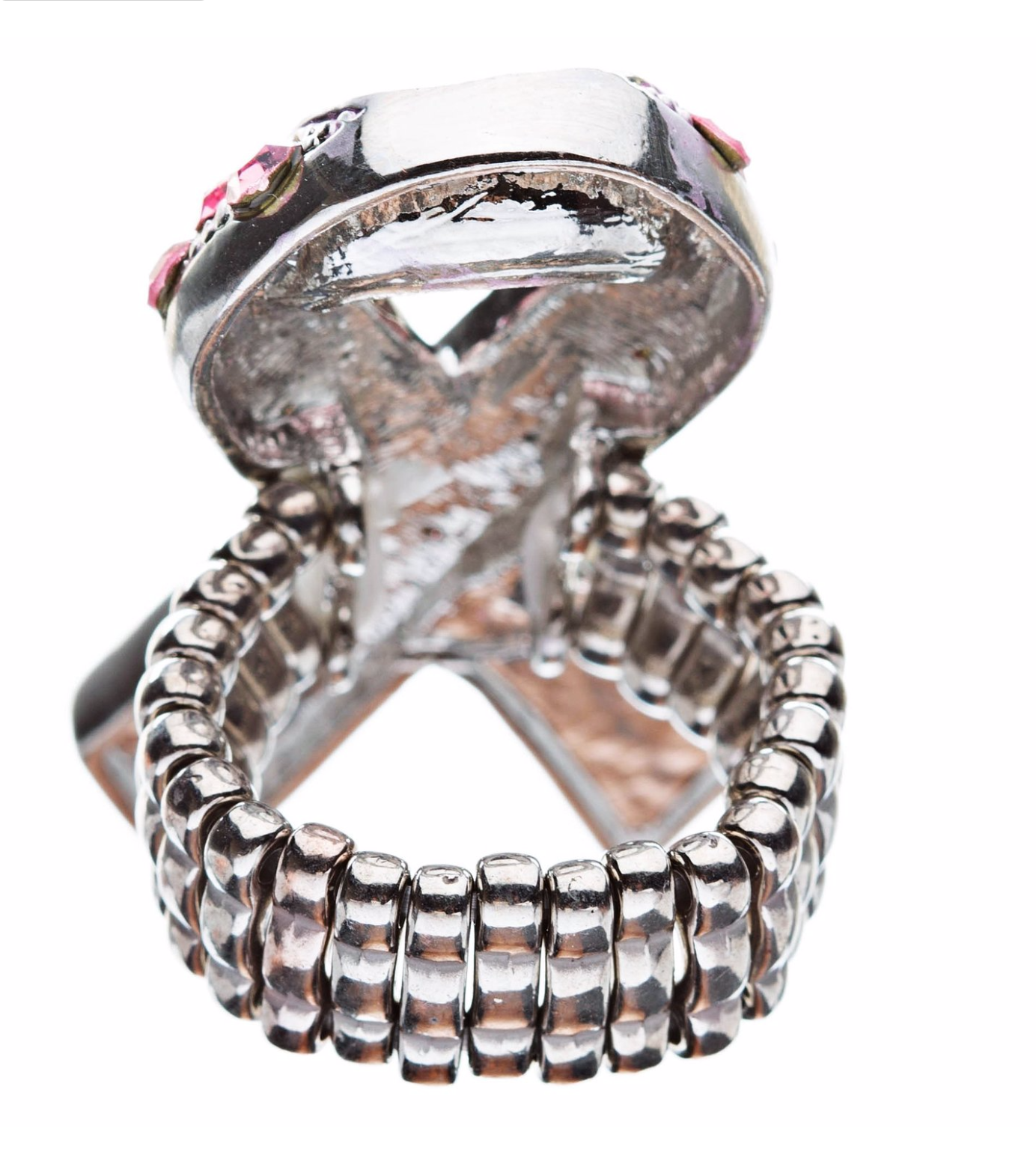 Material: Pink Crystal Rhinestones, Metal Casting, Rhodium / Silver Plated