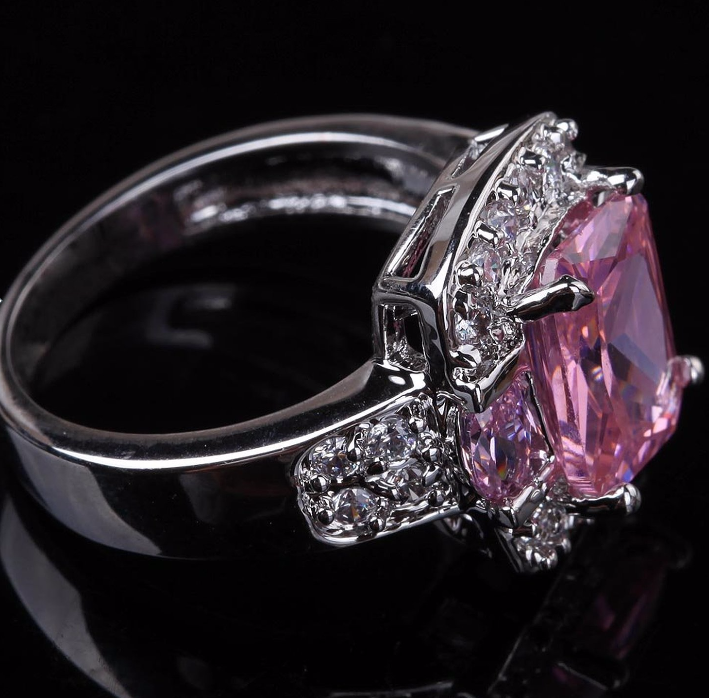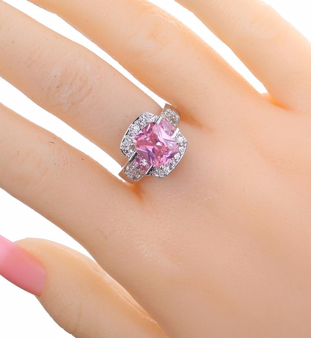 Emerald Cut Pink Created Topaz Silver Plated Ring
