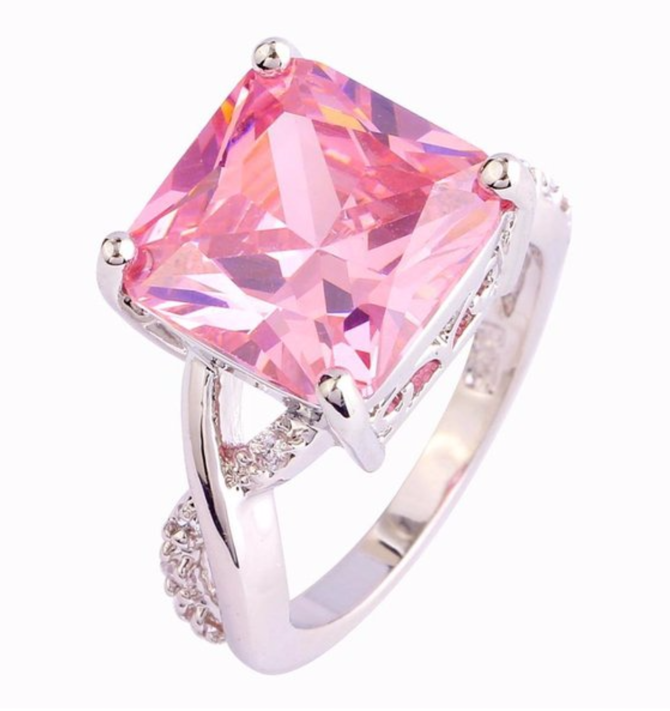 Sterling Silver Gorgeous 12mm*12mm Princess Cut Pink topaz Filled Ring