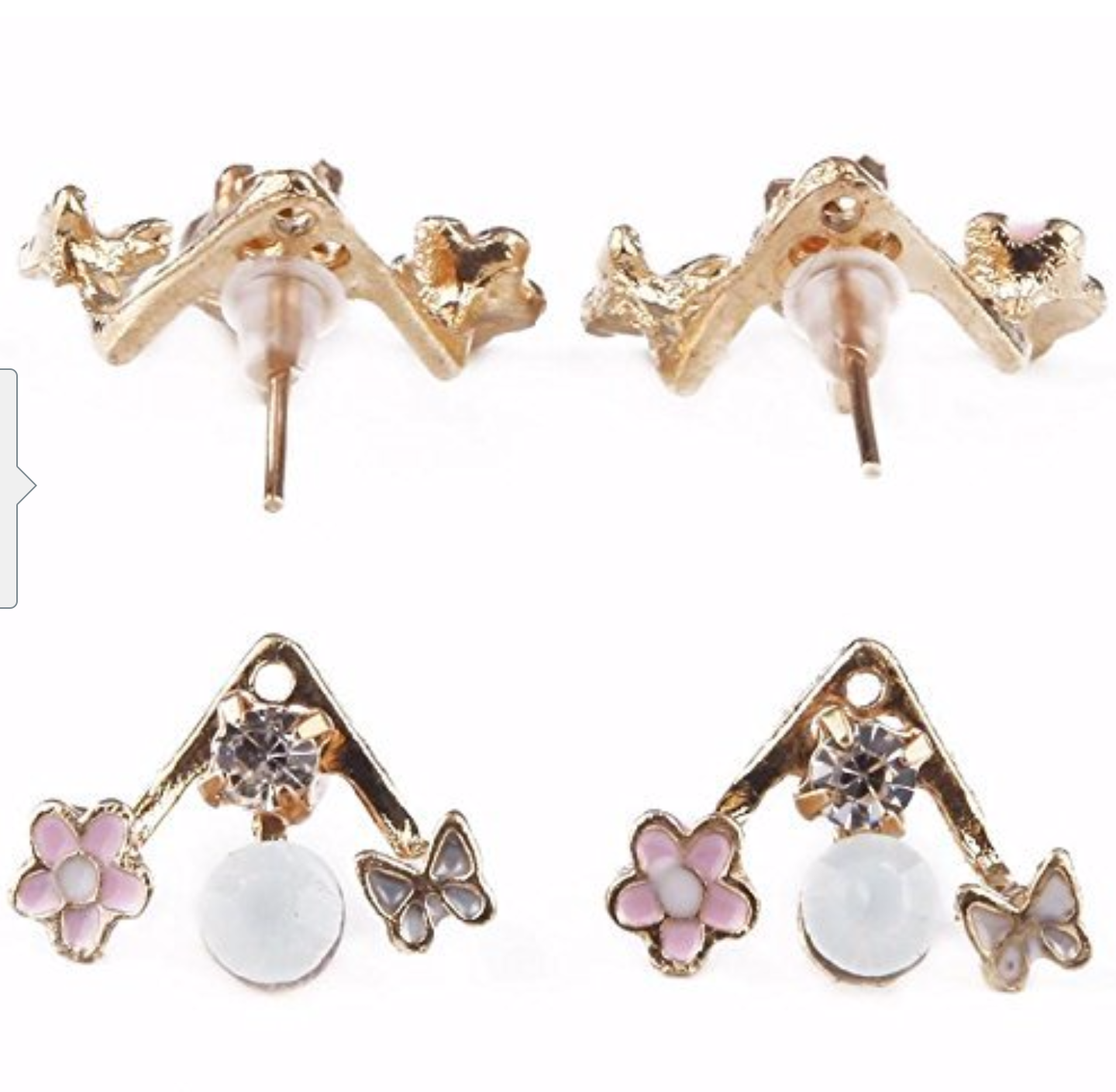 Lady Crystal Flower Rhinestone Earrings Front anf Back Ear Stud